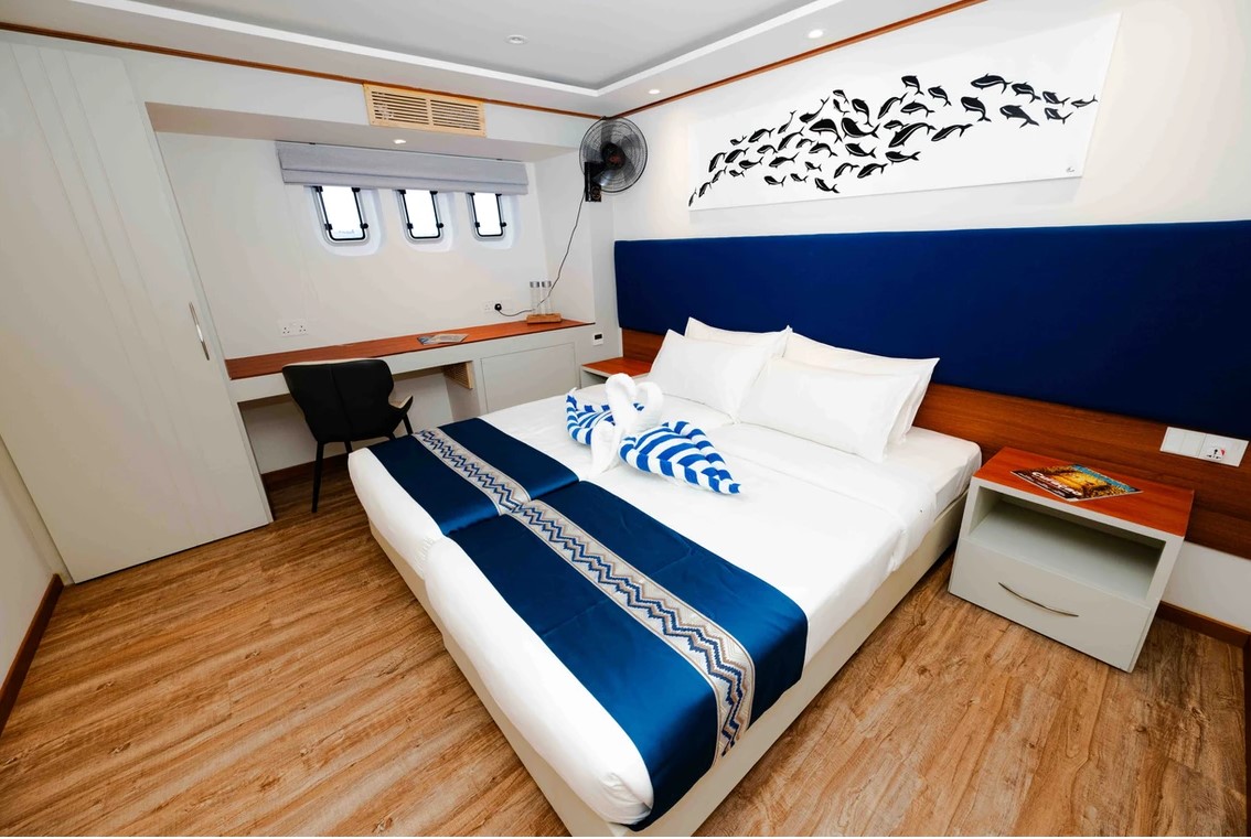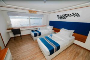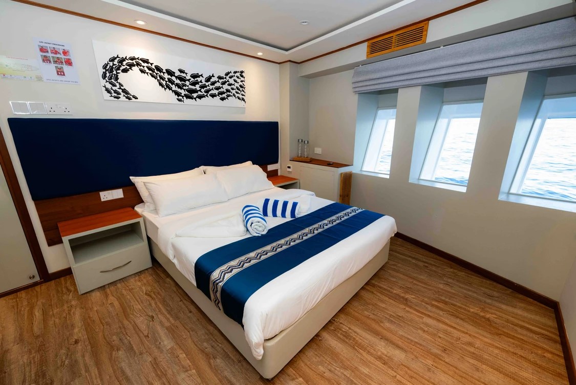 Na pokładzie znajduje się 14 kabin dwuosobowych, z których każda wyposażona jest w klimatyzację i prywatną łazienkę.